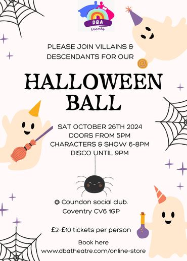 Please join villains and descendants for our Halloween Ball. Doors open from 5pm, characters and show 6-8pm, followed by our disco.